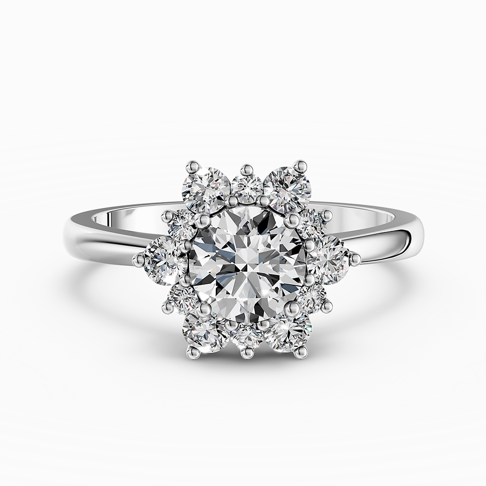 Белое золото, центральный бриллиант от 1 до 2 кт.